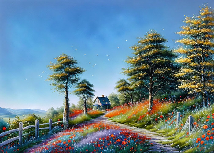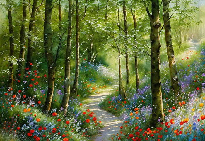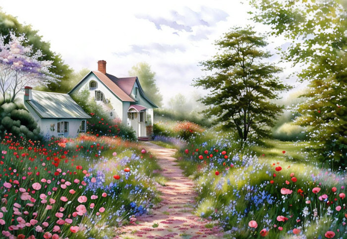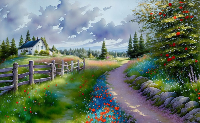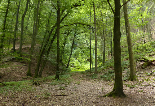 "Ein kleiner Pfad schlängelt sich durch die Bäume zur Hütte,