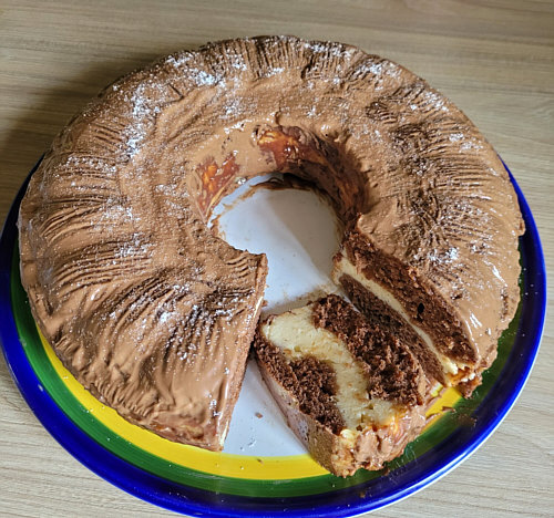 Gugelhupf 10 Minuten bei 210 °C backen.