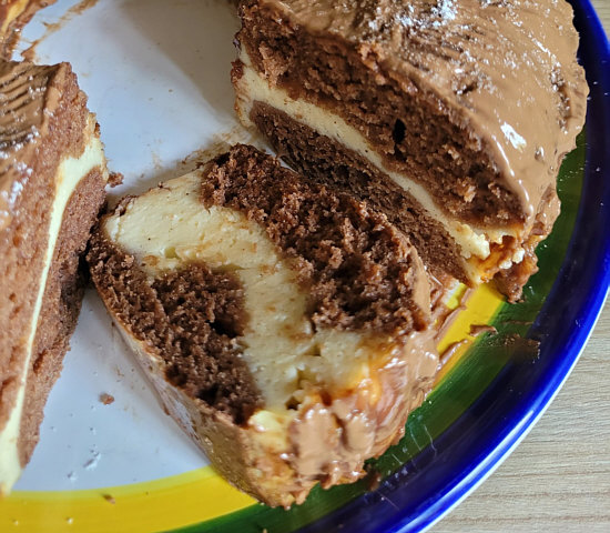 Kakaomasse – Quarkfüllung – Kakaomasse.