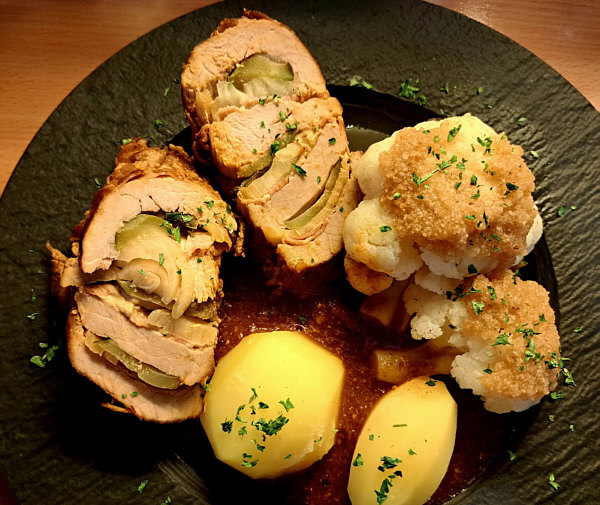 Schichtroulade mit Blumenkohl und Kartoffeln