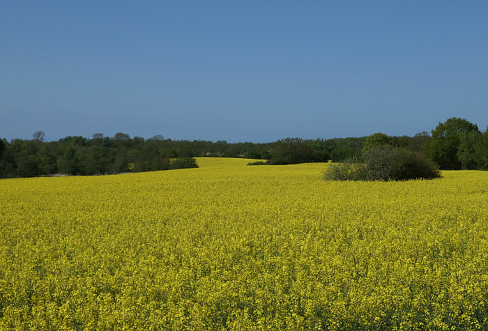 Im Mai blühen im Hinterland herrliche Rapsfelder.
