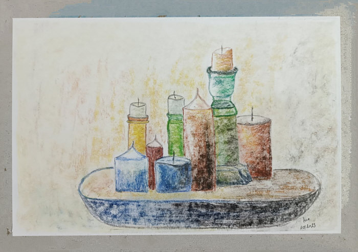 Thema: Stilleben, gemalt mit Hartpastellkreide
