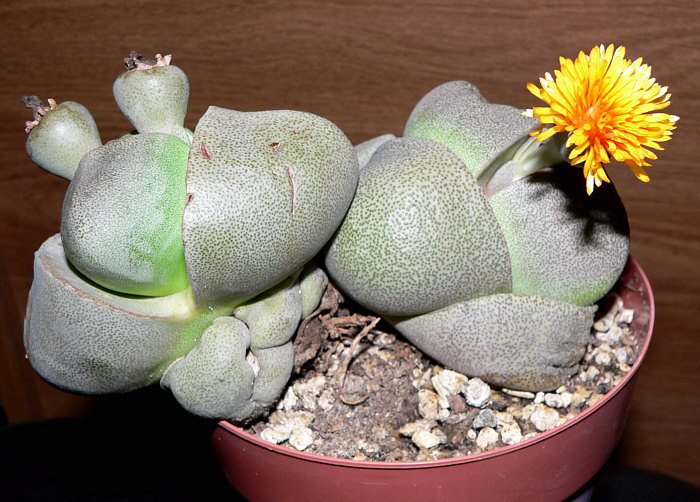 Die Blume heißt "lebender Granit" ("Pleiospilos