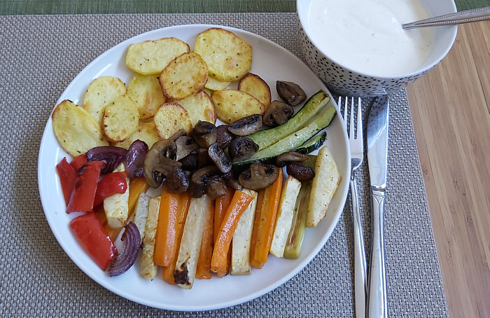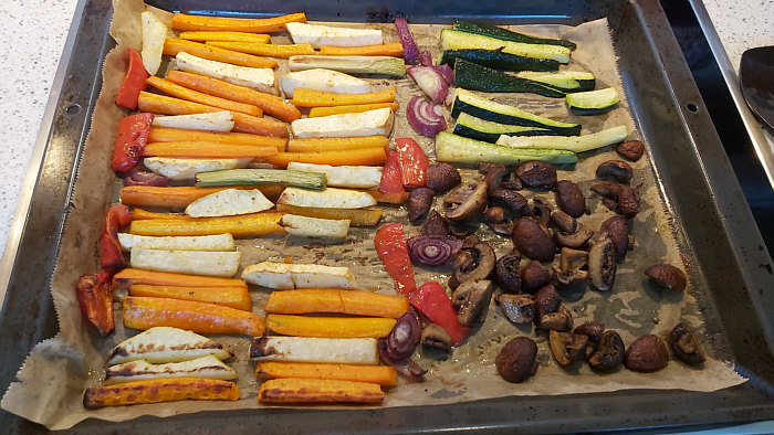 (Anmerkung Engelbert: Backofengemüse funktioniert auch