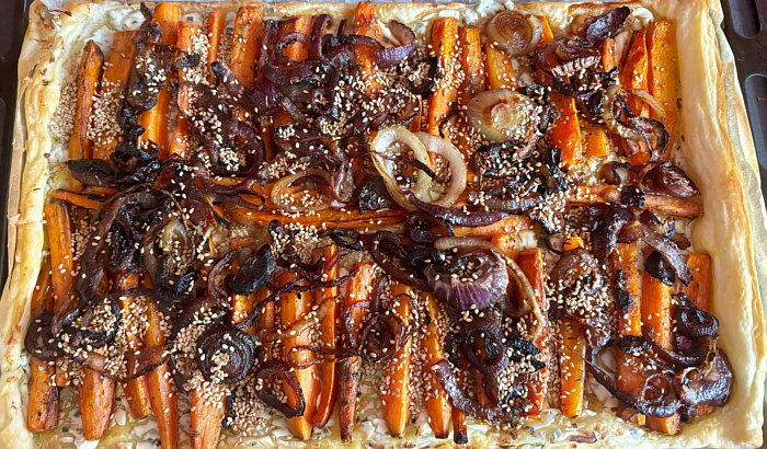 Ahorn-Möhren-Tarte mit Ziegenfrischkäse
