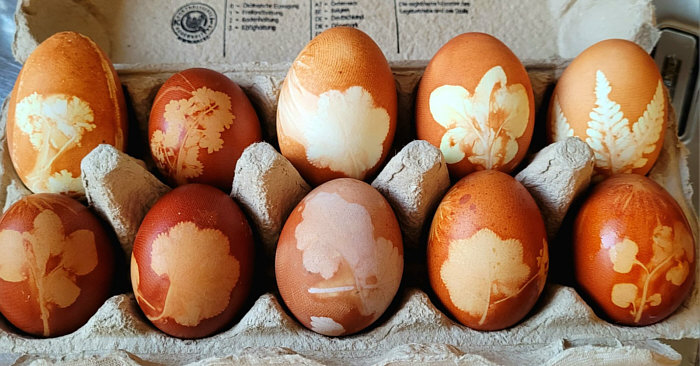Onyxia hat Ostereier mit Zwiebelschalen gefärbt