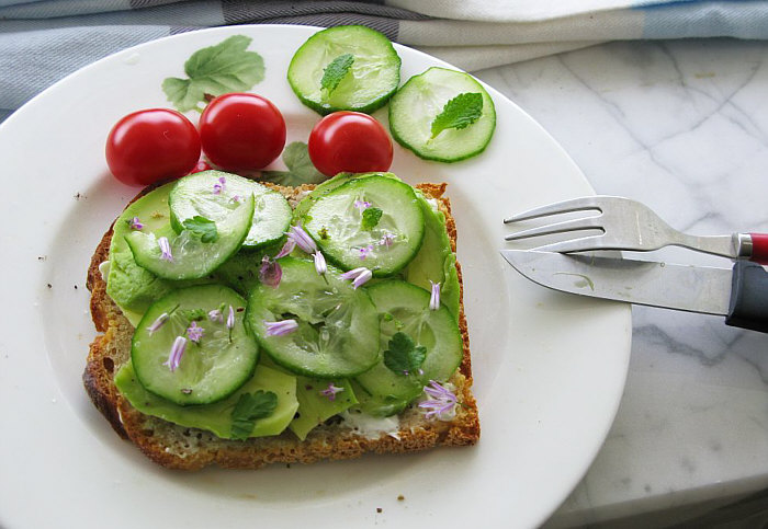 Belegtes Brot mit Avocado und Gurke