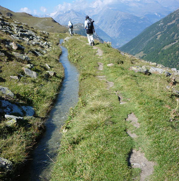 Er wird durch eine Suone befördert ... Suonen sind historische Wasserleitungen