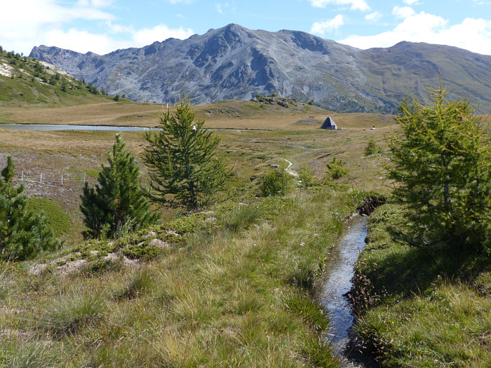 Der See dient als Wasserspeicher für die Bewässerung der Wiesen der Gemeinde