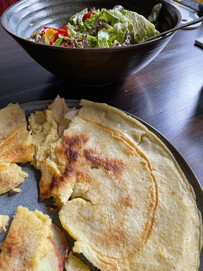 Ich hatte noch Apfelstücke im Pfannkuchen und ihn mit Zimt bestreut,