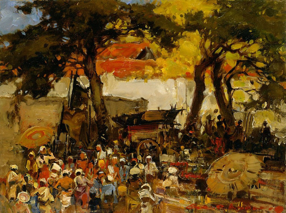 Gerard Pieter Adolfs (Niederlande-Ostindien, 1898-1968) - "Straßenszene Sidohardjo (Java)". [Kommentieren]