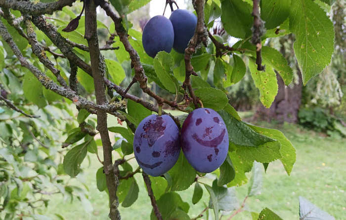 ist Kreativität ... mit den Fingern Smileys auf Zwetschgen