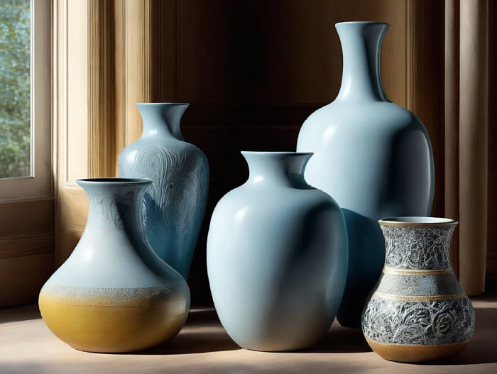 "Craquelure many different vases large and small"