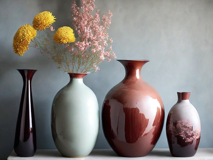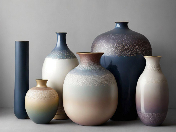 (Craquelé, viele verschiedene Vasen groß und klein)