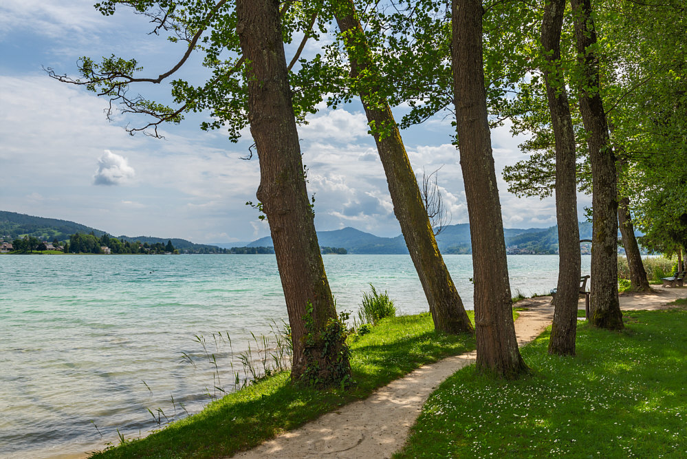 Guck mal ... da vorne sind Bänke. Lasst uns hinsetzen und den Blick auf den See genießen. Wir sind in Pörtschach am Wörther See. [Kommentieren]