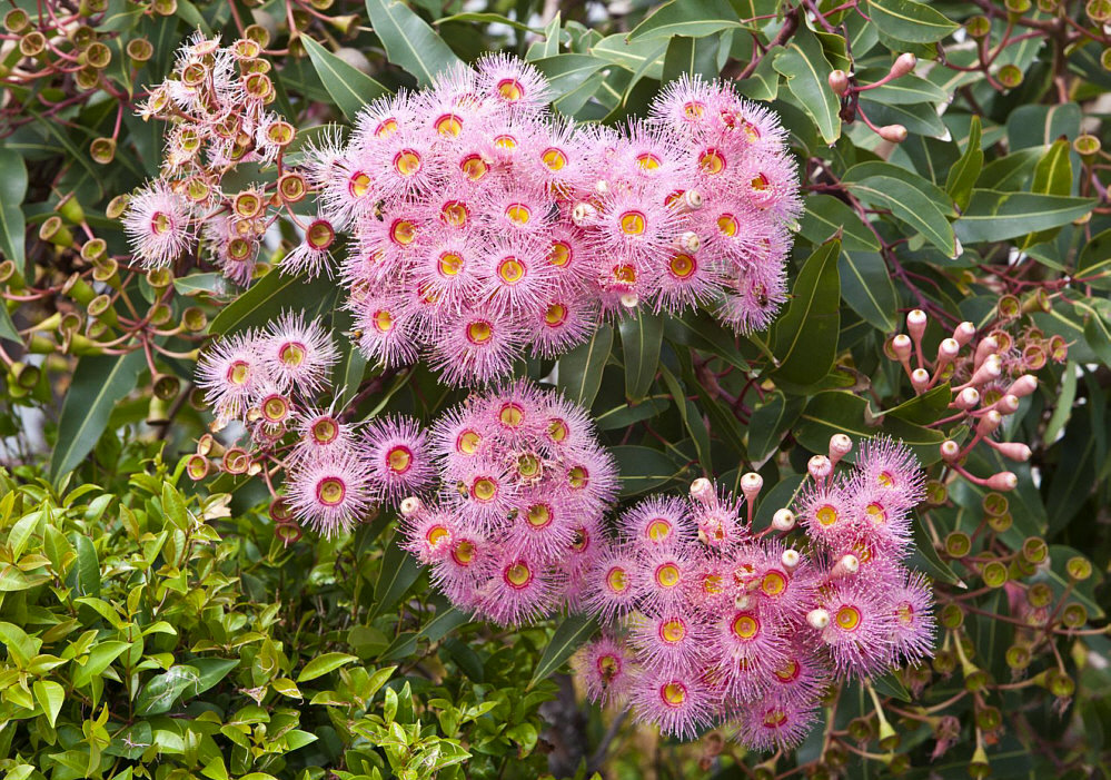 Corymbia ficifolia ist eine Eukalyptus-Art, die in Australien wächst. Hier sehen wir die rosafarbene Variante. [Kommentieren]