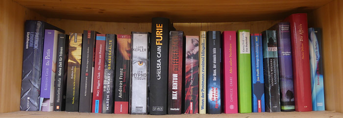 Die oberste Reihe von einem öffentlichen Bücherschrank:
