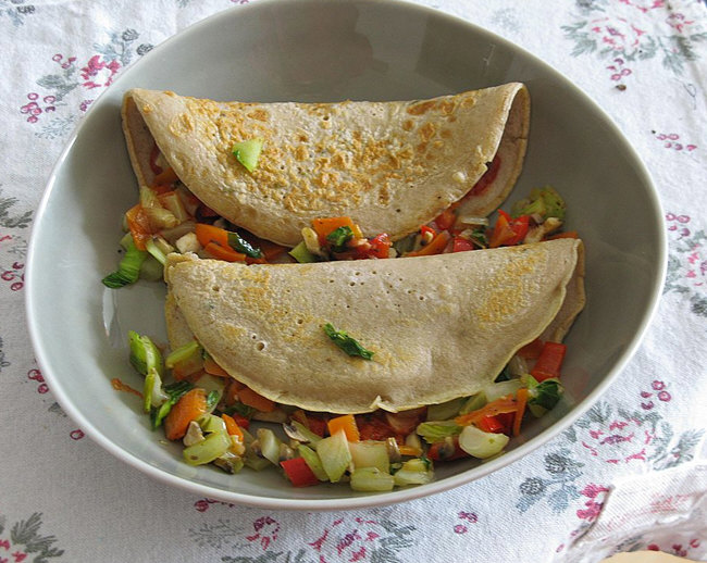 Buchweizen-Pfannkuchen mit Gemüse