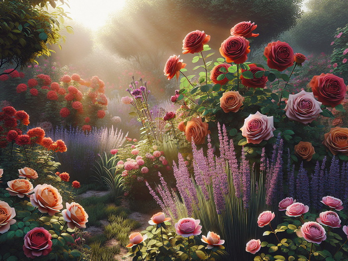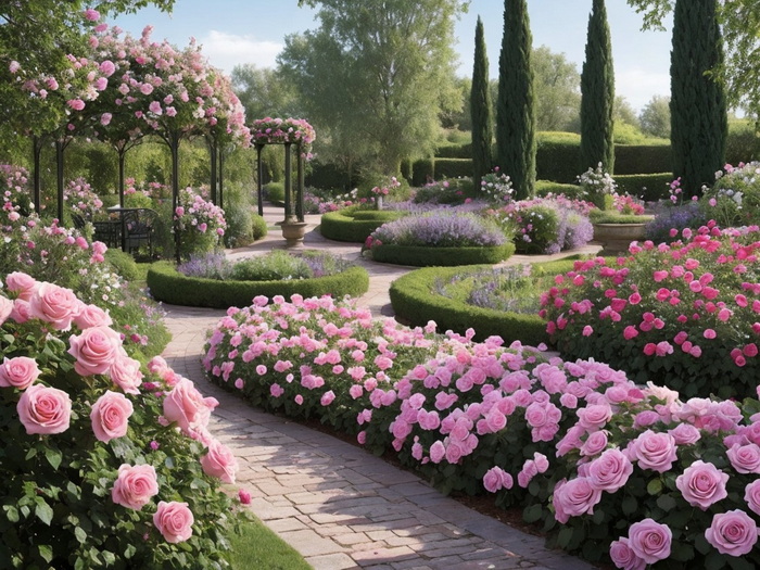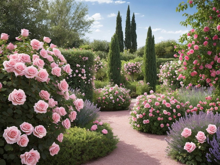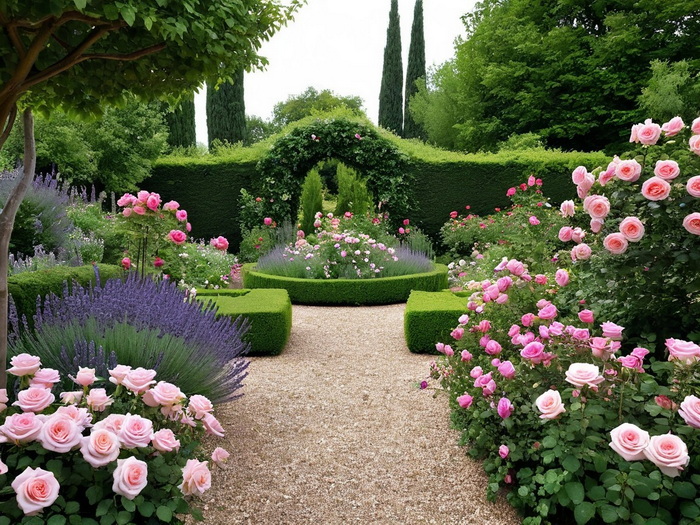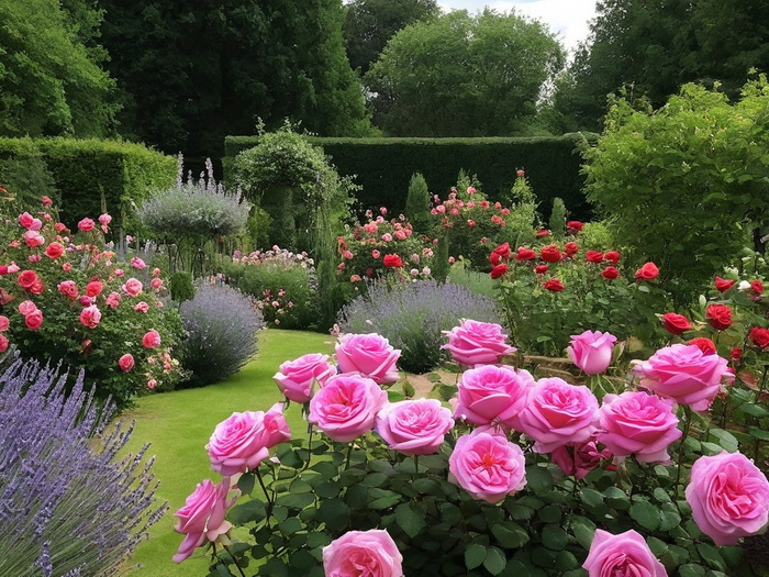 "Romantische Rosengärten in diversen Varianten, evtl. mit Lavendel