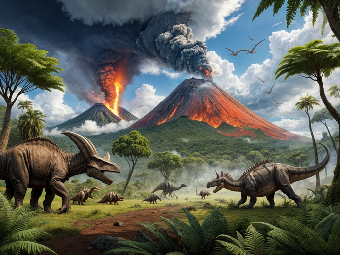 mit einer Herde Ceratopsiden und ein paar Stegosauriern,