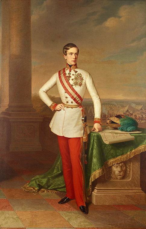 Rechts: Kaiser Franz Joseph I., Kaiser von Österreich, König von Böhmen, König
