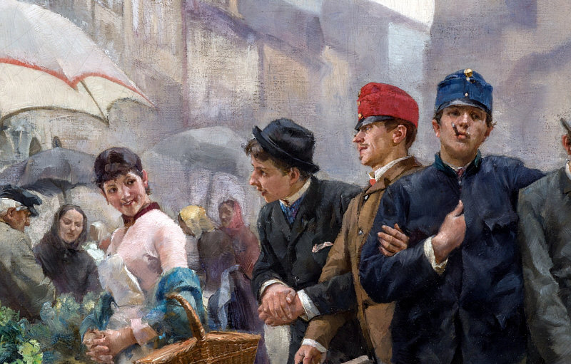 Das Bild trägt den Titel "Rekruten", wurde 1888 gemalt, Öl auf Leinwand, 75x112