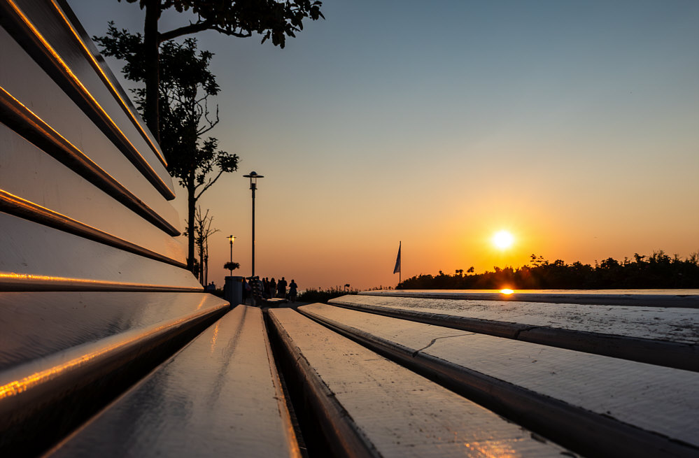Die besondere Perspektive ... Parkbank an der Strandpromenade bei Kühlungsborn.