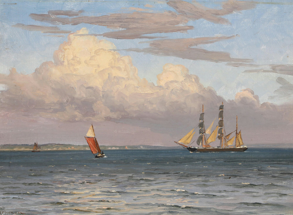 Vilhelm Arnesen (Dänemark 1865-1948) - Meereslandschaft mit Schiffen und Booten an einem bewölkten Tag [Kommentieren]