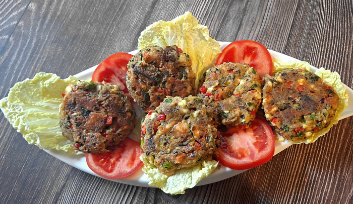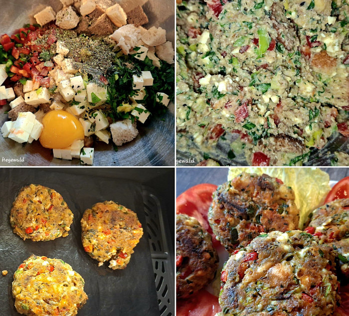Alles miteinander verkneten und zu kleinen Beefsteaks formen.