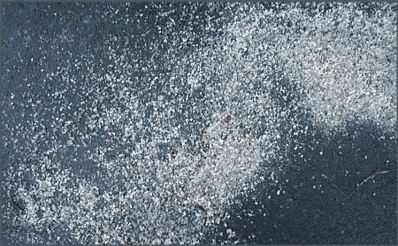 das ist Streusalz, das in (zu) großer Menge auf dem Gehsteig liegt ...