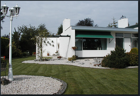 Wir sehen einen Vorgarten, fast im japanischen Stil angelegt. und wir sind in ... nee, verrat' ich noch nicht *g*. Wir schauen erst mal, was rechts vom Haus ist
