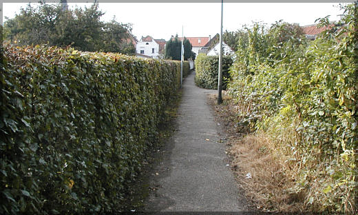 Wir haben gerade unser (neues, schnuckeliges) Auto geparkt und laufen durch diese hohle Gasse oder so ... Wir sind nur wenige Kilometer vom Windmühlenort entfernt und ich weiß sogar den Namen der Stadt :). Denn ich wollte ja extra dort hin. Aber erst mal interessiert mich etwas Anderes viel mehr ! Was wohl hinter dieser Hecke ist ... ? Dort oben die Hecke meine ich, rechts hinter dem Laternenmast. Das ganze frage ich mich leicht gehetzt, denn hinter uns ist eine Busladung Senioren im Anmarsch. Aber es hat noch für den Blick hinter die Hecke gereicht ... |