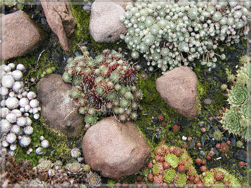 Steingartenpflanzen ... wir fuhren weiter, kamen aber nicht weit, weil ich nach ein paar hundert Metern wieder anhalten mußte, Beate hatte gerufen "schau mal, die Blumen" ...