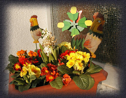 Ostern kann kommen, die Hähne sind schon da :)) und im Rasen des Vorgartens, da blüht auch schon das erste ...