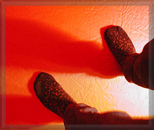 ... hat ebenfalls ihre Schuhe ausgezogen und steht in meinen Socken neben mir ;) Ja, es sind meine, denn so dicke Socken hat sie nicht, aber ich als chronisches "Frierhinkel" *g* Wir richten beide unseren Blick zu dem Stimmengemurmel