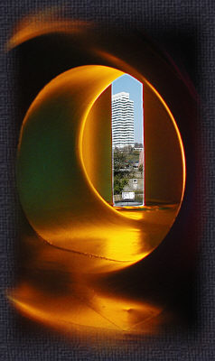 Auf einmal sehen wir eine Öffnung, durch die Tageslicht hereinscheint ... Schade, der Rausch der Farben scheint nun vorbei zu sein ... Denn wir sehen wieder das Rathaus von Kaiserslautern ... Zögernd und leicht unwillig treten wir ins Freie ...