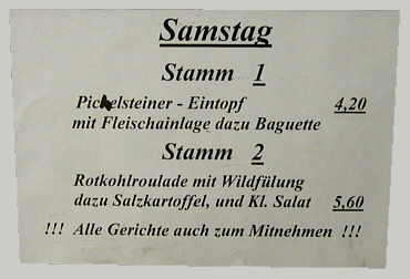 ![]() ![]() -- Viel gibt es nicht hier und heute. Ich bekomm' Besuch und wie immer bringe auf den letzten Drücker meine Bude auf Vordermann. Muss auch sofort damit anfangen, damit das noch einigermaßen was wird ;). [ 4 Kommentare ] -- Jörg schreibt ja auch Tagebuch :)) [ 0 Kommentare ] -- gesucht wird dieser Font: ![]() wer hat den auf seiner Platte und kann ihn mir rüberreichen, wäre toll, großes Dankeschön schon jetzt !! [ 2 Kommentare ] -- Sogar Gasthäuser wissen es. Hier ein Ausschnitt der Speisekarte aus dem Lokal vom Dienstagabend :) ![]() Diese Worte kann ich nur unterschreiben :)) [ 1 Kommentar ] -- Also, ich pflege ja nicht, private E-Mails hier auszubreiten. Aber eines muss ich doch erzählen. Kam da eine Anfrage rein: "sach mall habt ihr auch post karten von daniel" Ich grübelte, wer das wohl sein kann. Ein Fotograf, ein Grafiker, ein Mensch hinter einer Website. Von Daniel Fiene vielleicht ;)). Tja, das Rätsel blieb und ich fragte zurück: "von welchem Daniel ?" Die Antwort bekam ich eben: "von Daniel kügehlbog" als ich das gelesen hatte, "kügehlbog" es mich vor Lachen ;)). Denn Kügehlbog = Küblböck. Und leider muss ich passen, von dem habe ich keine Post karten ? Sach mall, ist das ned schlimm, ne wa ?? [ 4 Kommentare ] |