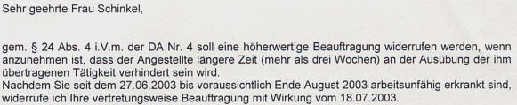 ![]() ![]() ![]() ![]() [ 1 Kommentar ] -- ![]() Übersetzung: Frau Schinkel, auch wenn sie sich das letzte halbe Jahr den Arsch aufgerissen haben und gearbeitet, was das Zeug hält, auch wenn sie sich Arbeit mit nach Hause genommen haben, es nützt ihnen gar nix !! Sie werden keinen Heller mehr an Geld sehen. Pech gehabt, da sie sich dieses nette Band gerissen haben, auch noch während der Arbeit, da nehmen wir doch dieses nette Ereignis als wunderbare Gelegenheit, Ihnen ab sofort ihre alte Tätigkeit wieder zu geben. Oder besser noch, sie dürfen sich durch die gleichen Berge wühlen, nur fängt Ihre Wartezeit auf mehr Geld wieder vorn vorne an. Und wenn die vorbei ist, wird uns schon etwas Neues einfallen. Unser Versprechen, dass sie mehr Geld bekommen, war eigentlich schon von Anfang an nichts wert. Aber wir müssen das Ihnen ja nicht schon vorher sagen, sie erfahren das ja schon noch. Außerdem haben Sie wegen Überlastung den freiwillig übernommenen Webautor niedergelegt. Man lege niemals etwas nieder, das für uns wichtig ist, auch wenn der Niederlegende wegen Arbeitsüberlastung darniederlegt. Hier ist Ihre Quittung, sie sind uns so egal und unsere DA etc. ist so nett und gibt uns ein Argument. Somit widerrufen wir mal liebevoll. Ob Sie jetzt zu Hause sitzen und wütend weinen und schreien, das ist uns so was von egal. Es sind ja nur Sie kleines Arschl... von vielen. Sie sind uns lieb, sollen aber nie teuer sein. Sondern still, leise und gesund. Was müssen Sie auch so blöd sein und übers Kabel fallen. Und vergessen Sie mal schnell, dass wir sie mit "sehr gut" beurteilt haben, das tut nichts zur Sache. Dieses Schreiben wurde übrigens verfasst, "bevor" wir Ihre Verlängerung des Krankenscheines hatten. Sie sind zwar am Absendetag unserer Worte erst 13 Tage krank, aber negative Dinge werden halt schnell erledigt bei uns. Übrigens: für positive Dinge brauchen wir alles schriftlich, für negative Dinge reicht Mundpropaganda. So, und nun lassen Sie uns in Ruhe, wir verbeulen derweilen weiter unsere bequemen Ledersessel. gez. Reine(r) Willkür [ 10 Kommentare ] -- Beate ist nicht nur wegen dieses Briefes schlecht drauf. Der hat das Fass zum Überlaufen gebracht. Das Ärgernis vorher ist die Tatsache, dass sie nicht, wie erhofft, einen normalen kleinen Tapeverband um den Fuß hat, sondern immer noch überdimensionale Schienen. Beate fühlt sich eingeengt und wenn sie etwas nicht leiden kann, dann ist es das. ![]() [ 1 Kommentar ] -- Presseschau zu Schröders abgesagter Italienreise. Ich find's nicht mehr als richtig, dass er im Ländle bleibt. [ 5 Kommentare ] |