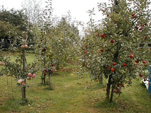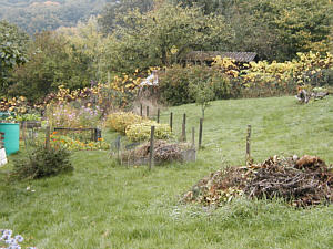 Herbstimpressionen zwschen Äpfeln und geschnittenen Zweigen. Die Anlage liegt an einem Waldrand, ein idealer Ort, damit Beate Blätter sammeln konnte.