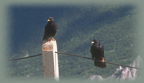 Sie schauen diesen beiden Vögeln zu.